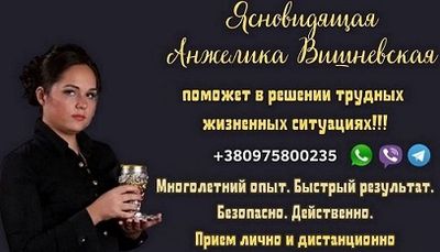 Спадкова провісниця, ясновидиця в 10 поколінні, з давнього роду Дошкещі Анжеліка Вишневська допоможе у вирішенні важких життєвих ситуаціях!!!